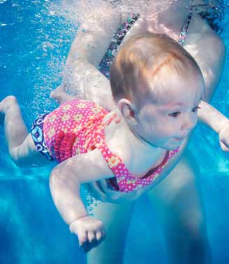 Approche en douceur et sécuritaire favorisant l'amour et le plaisir de l'eau chez le bébé, en toute confiance avec son parent et son moniteur.